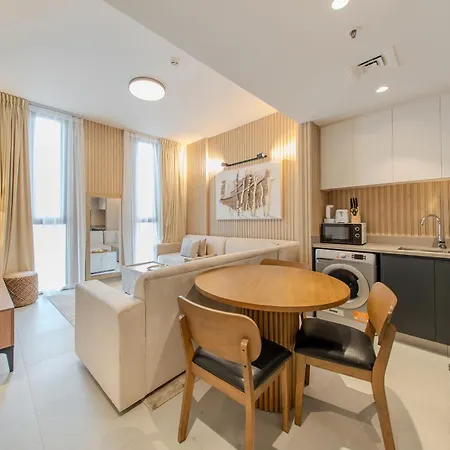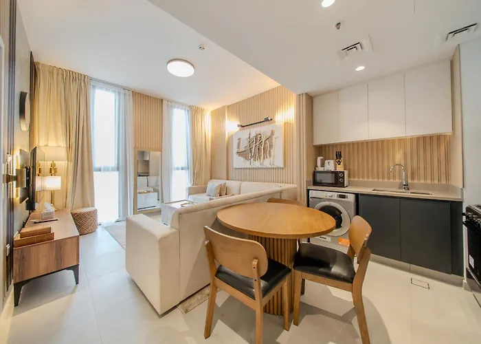 O 1BR Aljada Apartment in Sharjah está equipado com cozinha totalmente equipada com electrodomésticos para preparar os seus próprios pratos. O aeroporto Internacional de Sharjah pode ser alcançado em cerca de 15 minutos de carro deste apartamento.